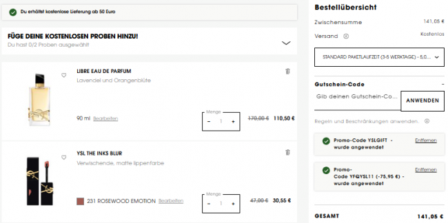 3.加入心仪单品,删掉不打折的皮革腮红,折后满120€即可获得11件赠礼💥