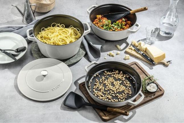 经典铸铁材质锁鲜锁味,焖炖煲煮煎样样行,白松露配色高级百搭,