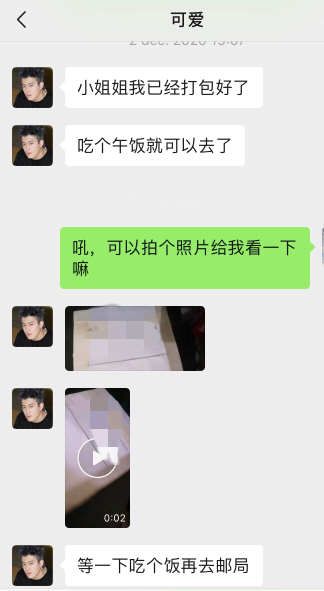 它说包邮寄法国,然后我让帮忙拍个包裹图就拍一个,但是可能是个空盒子🙄我让帮忙把邮寄信息改一改,就说“好的,那我一会儿拿修正带花一下重新写”,而且一直会说,“我已经打包好了”“我吃个饭就去给你寄”。信息回复的状态和语气与真实的二手卖家真的别无两样!