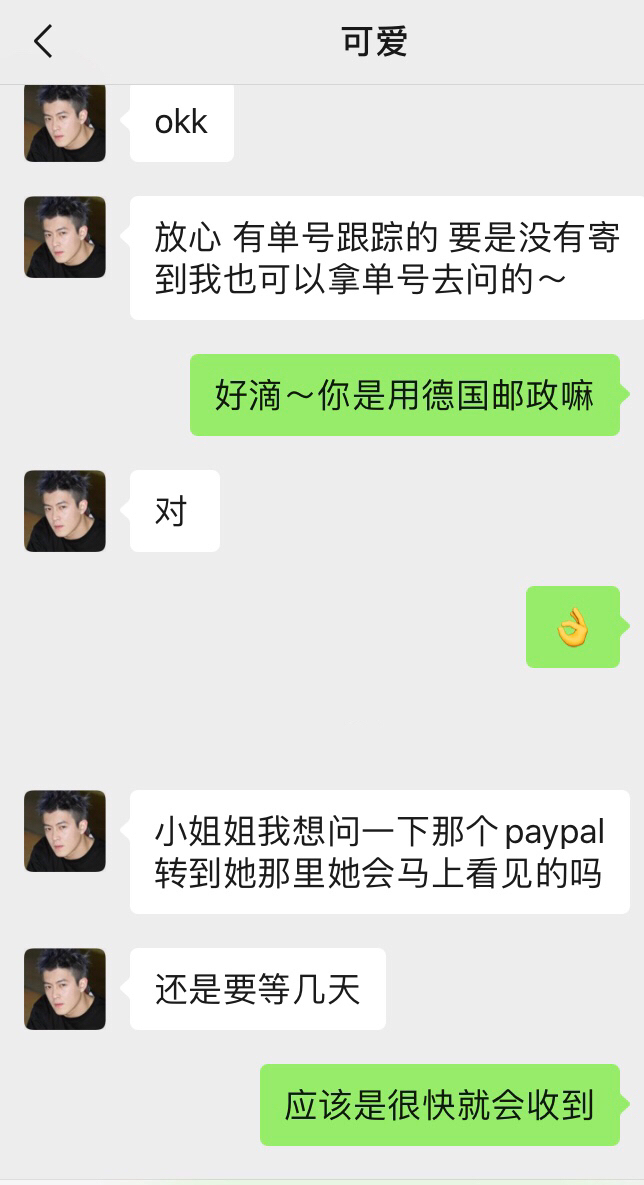 当然买的过程也不是“要买-买了-付钱”这么简单,在处理突发的情况时,它们也都非常有经验。比如,我就真的没有RMB,我提出用欧元支付。它说跨国银行转账存在流程上的问题,我就提议用PayPal,它说它没有PayPal账户。两分钟后,它说它有一个意大利小姐姐的paypal账户(我怀疑它开始编故事了):因为它从一个意大利小姐姐那里订了个二手包包,也是要付了钱才能发货,于是让我转账给这个意大利paypal。它当时还说,也都是多亏这个一分钱平台啊。现在看来,真是讽刺,它简直是对不起且玷污一分钱这个平台!