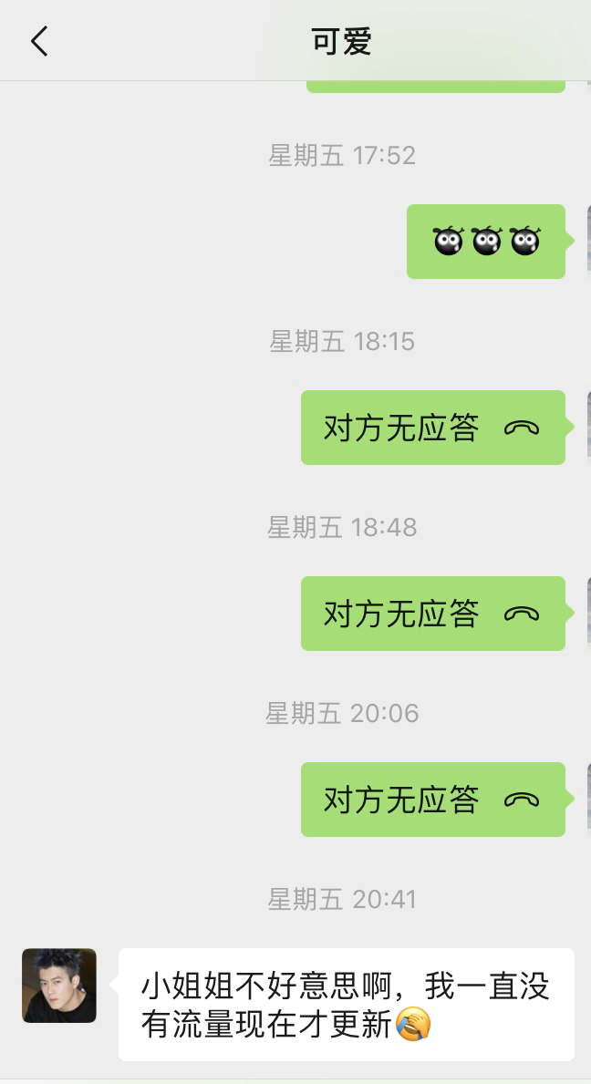 最后,它也不拉黑你,也不删你,就是一直不理你。不说话,不回复,打语音电话也不接。也许它会在第二天突然回复你一句,什么不好意思啊,它手机坏了,网络连不上了什么的情况,然后就再次失联。