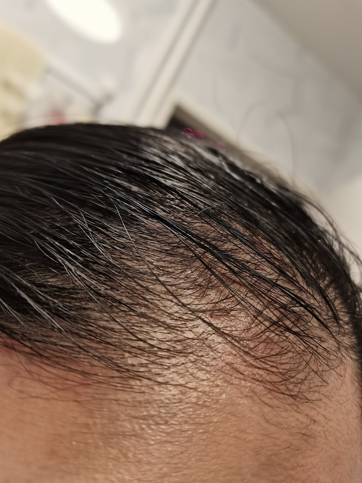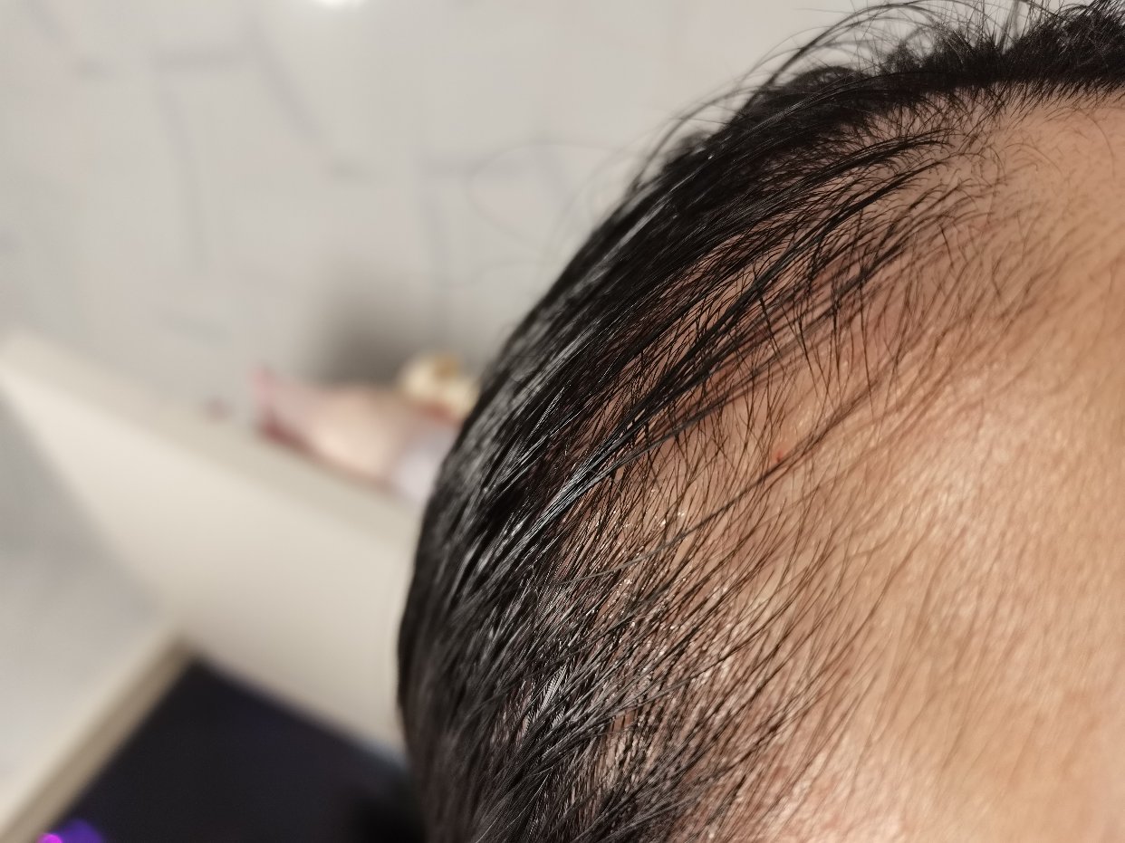 用了半瓶的生发精华,每天晚上洗完澡之后使用,发际线两边秃秃的头皮就以肉眼可见的速度长出了很多新头发,照片是在刚用完生发精华后拍的,看起来那叫一个油阿,所以建议大家晚上使用😂