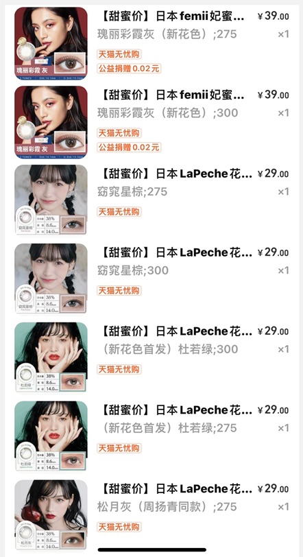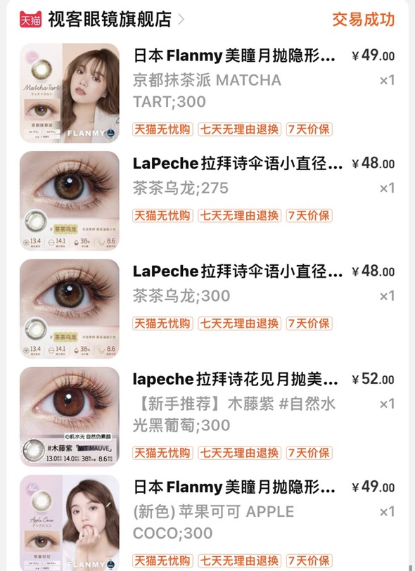每次转运都会在淘宝上必须买的老三样:美瞳、防晒和花王染发剂 美瞳都是以月抛为主 日抛普通家庭咱也用不起😂 入的最多的还是拉拜诗的月抛 好看还划算 日本envie的也不错 便宜每次都随便囤 618 双11也是可以买一波