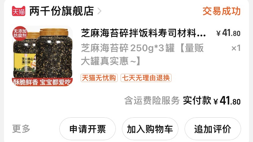 早上做三明治烤吐司什么的撒上芝麻碎海苔好吃极了!听说拌着白粥也好吃