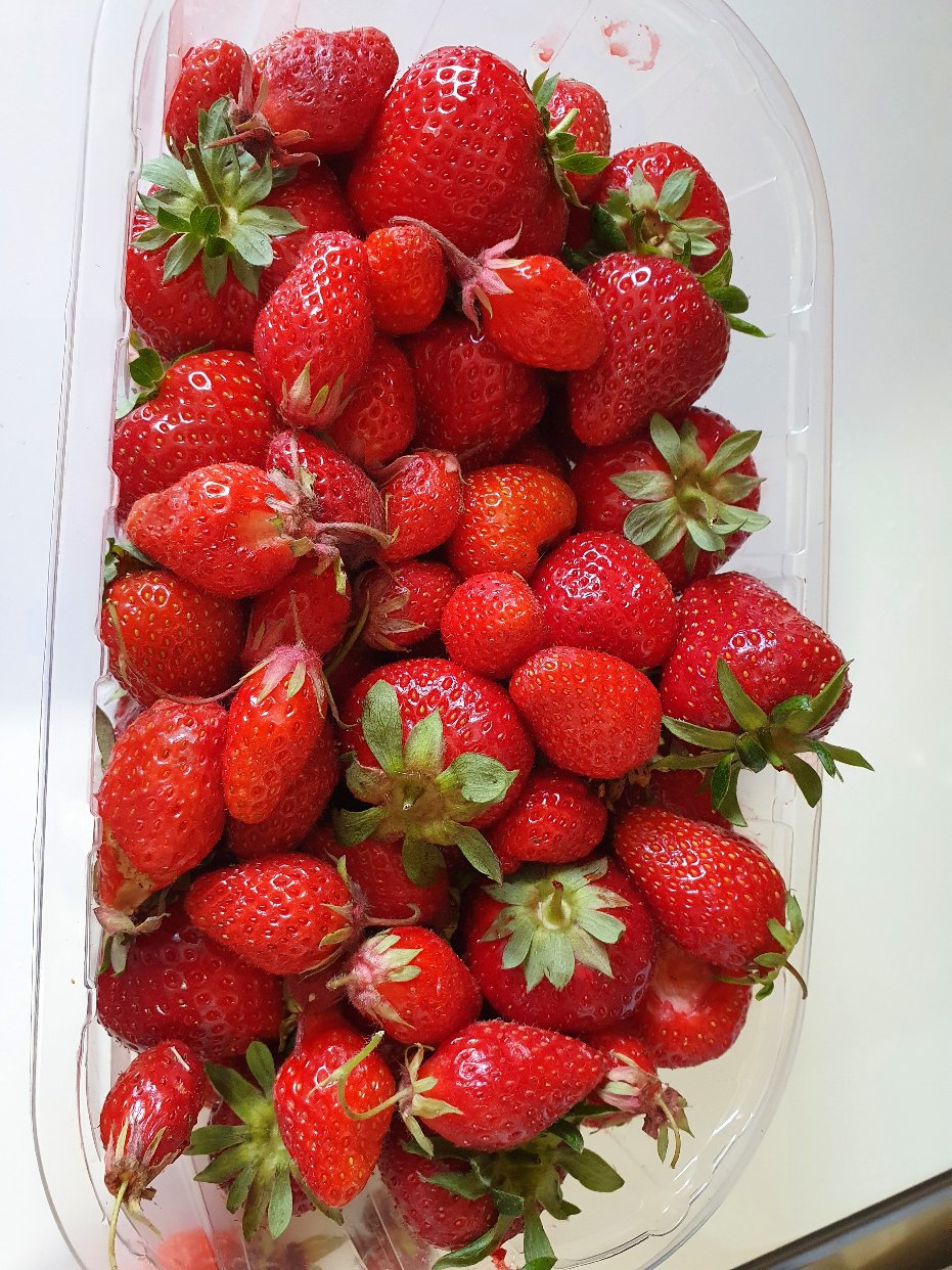 选了三种草莓,最小的细长形状的最甜,上周采了不少,今天去已经没多少了。农场出口处,直接把草莓打成汁,给我们品尝,很甜,很新鲜。觉得加点冰,直接打成草莓沙冰,应该也不错。草莓好像是6欧一公斤。我不太看价格。